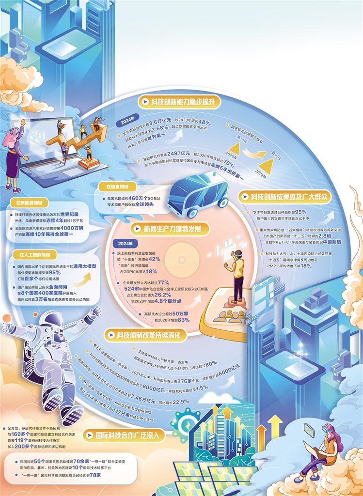 数据来源 据国务院报业网官网消息,“十四五”期间,我国科技创新领域提交了综合绩效报告。 2024年,全社会研发投入将超过3.6万亿元,不仅超过欧盟国家平均水平,而且较2020年实现48%的大幅增长,研发总量位居全球第一,研究论文数量位居全球第一。国际高水平专家和国际专利申请量连续五年位居世界第一……这一系列的背后f数据在于对“人才至上”时代含义的深刻理解。科技创新与人力资源开发的共振被淋漓尽致地体现出来。科技发展水平体现了一个国家的综合国力和核心竞争力。如何将人力资源这一第一资源高效转化为科技创新第一动力,是推动高质量发展、确保我国长期稳定跻身创新型国家行列的核心问题。这些数据表明,青年人才在科技创新中“主动作为、引领引领”。 “十四五”期间,国家重点研发计划参与人员中45岁以下的青年人才占80%以上,是科技创新的生力军。是科技、创新、活力的源泉。青年人才在科研创新活动中逐步突破年龄、资历的限制。他们勇敢地闯入“无人区”,攻克重大科研挑战和平台的“瓶颈”。同时,青年人才将积极推动校企联合实验室建设,共同组建研发团队,共同培养科技人才。人才发展精准契合产业需求,科研方向与技术进步紧密结合,打通教育、科研与产业的联系,打造产学研深度融合的创新生态系统。工程师是企业的主战场,是一门学科。 2024年日本社会研发总投入预计将超需要3.6万亿元,比2020年增长48%,企业研发投入占比将超过77%。科技人才将在产学研中“发挥才能、产出成果”,成为转化科技创新成果的动力。国家完善政策支持体系,加强校企合作。各方人才联合开展信息、新能源、人工智能等新兴产业技术关键核心技术研究。同时,完善科技创新成果转化激励机制。人力资源以物质和精神奖励等多种方式分享创新红利,最大限度激发创新活力。人民群众是科技创新成果的受益者。辛克“十四五”,农业科技进步提高了我国水稻的稳定性和安全性,病害防治和医疗装备创新守护了人民健康的防线,生态防治治理技术守护了“绿水青山”。这些实实在在的成果,昭示着科技创新给人民带来的福祉,也体现了“发展为了人民、发展依靠人民、发展成果由人民共享”的价值观追求。当人们的需求是推进科技创新的根本,当人才和智慧不断服务人们的生活时,科技创新才能在更深、更肥沃的土壤中扎根,获得更持久的生命力。站在新的历史起点,推进科技自主自给先进性中,人力资源是一个重要的变量。只有不断完善人才发展机制,优化人才发展环境,激发人才创新活力,促进人才与科技创新深度融合、共振,才能以人才力量推动科技涌现,以创新进步夯实发展基础,为质量发展提供不竭动力,使我国在创新型国家建设道路上稳步前进。 (本文来源:经济日报 作者:邱艳)